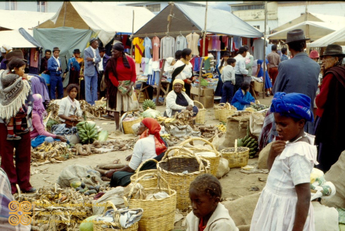https://fondoafro.uasb.edu.ec//handle/31000/4380| Título : | Mercado con personas, productos, canastos, carpas |